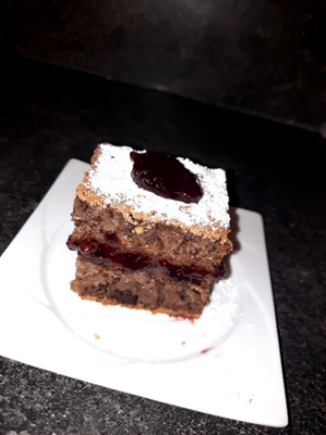 Nakonec vytáhneme korpus z trouby, necháme vychladnout a na něj následně nanášíme vrstvu krému a poté vyšlehanou smetanu s džemem. Dozdobíme podle libosti a dáme vychladnout do lednice.