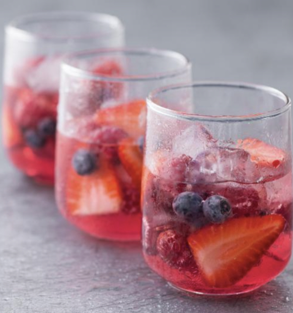 Do džbánu dáme všechno ovoce a zalijeme ho vodkou a likérem. Směs necháme chvíli odpočívat, aby se vše spojilo dohromady. Přidáme čerstvě vymačkanou citronovou šťávu z jednoho citrónu a 750 ml vody s rozmíchaným malinovým sirupem. Do sklenice si přidáme kostky ledu.